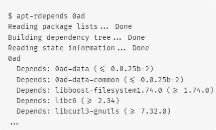 apt-rdepends 是一个在基于 Debian 的系统上使用的工具,它用于查询一个包的依赖关系。它可以同时解析软件包的正向依赖 (dependencies) 以及反向依赖(reverse dependencies)。这对于理解一个软件包的依赖性和它在系统中的位置非常有用。